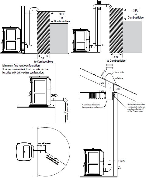 The four most typical pellet venting methods are illustrated below, refer to product
