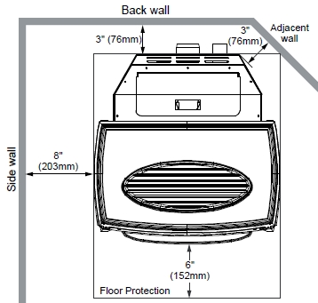 3) 20 gauge sheet metal or non-combustible material - ceramic tile, stone, brick, etc..