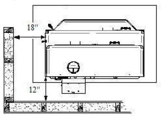 a clearance of 12 inches of to the back and 18 inches to the sidewalls.