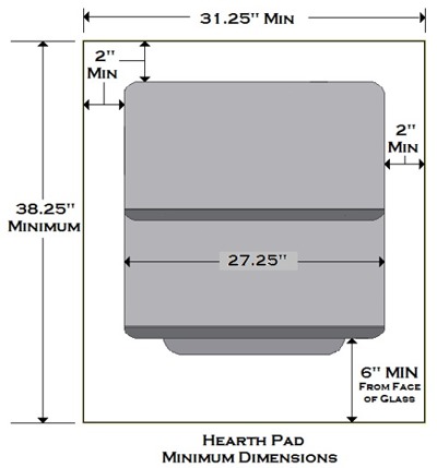 2) Site built hearth pad ofnon-combustible material - ceramic tile, stone, brick, etc.