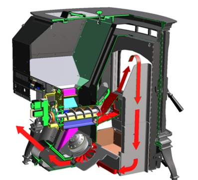 into a burn pot, this system pushes the fuel straight into the bottom-up feeding system.