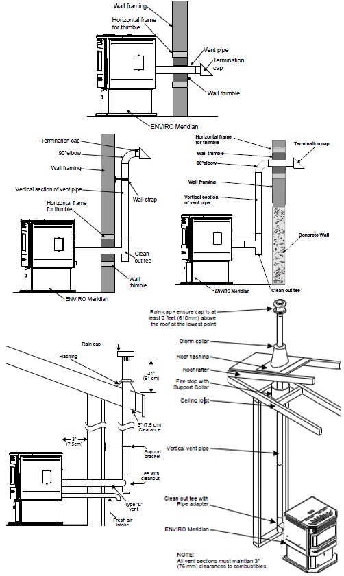 Five of the most typical pellet venting methods are illustrated below, refer to product
